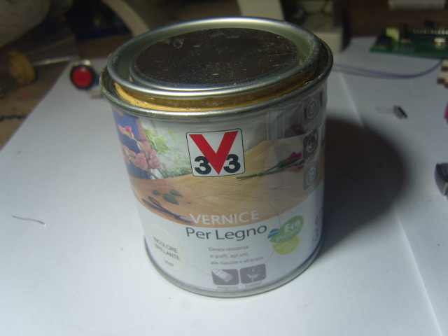 | Stendere una prima mano di smalto e lasciare asciugare per almeno 12h. Il legno aquisirà una lieve granulosità, removibile con la carta vetra. Dopodiché stendere la seconda mano e lasciare asciugare altre 12h |