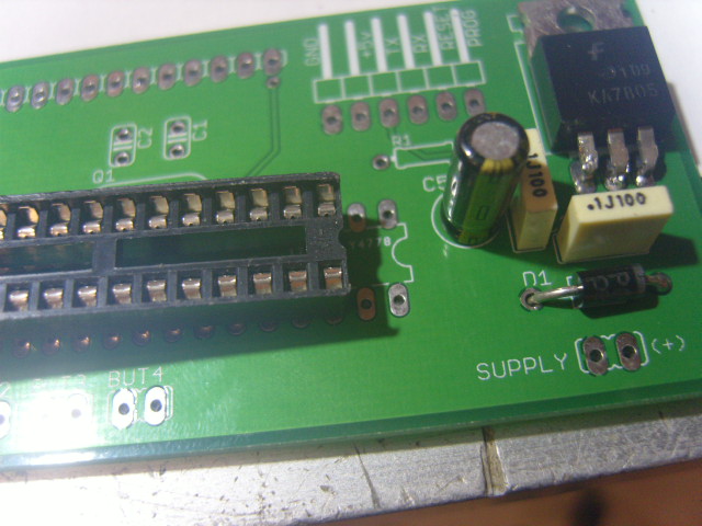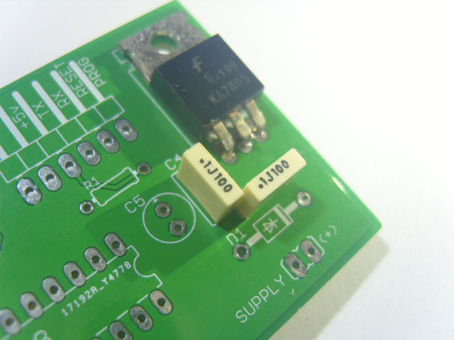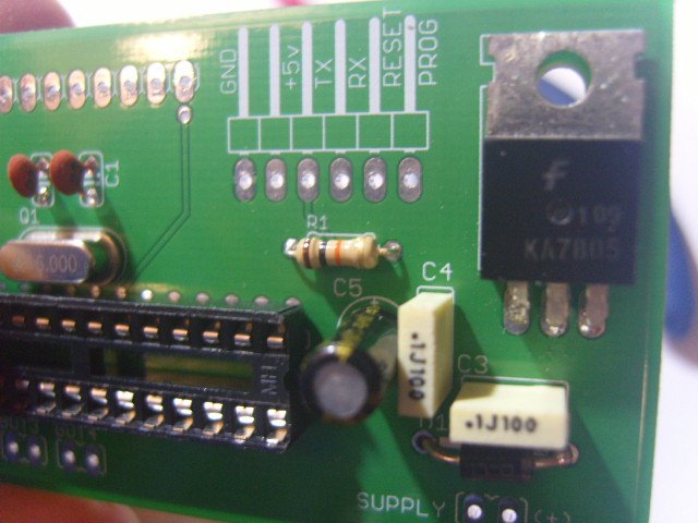 | Cominciamo saldando la sezione di alimentazione IC2: 7805 C3,C4: Condensatori 0.1uF |