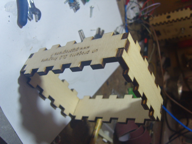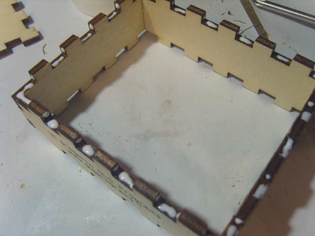 | A questo punto passiamo all'assemblaggio della scatola e delle parti elettromeccaniche. Per prima cosa incolliamo i lati della box utilizzando della comune colla Vinavil o analoga. Attenzione! non incollare né il frontale né il retro, solo la cornice. | ||